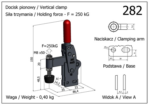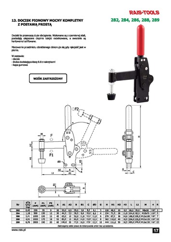 UWAGA : docisk kompletny : z śrubą dociskową i gumową stopką ochronną.
